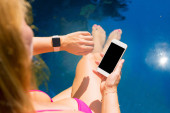 Zdjęcie "Kobieta za pomocą zegarka smartwatch czy tabletu" może być wykorzystywane do celów osobistych i komercyjnych zgodnie z warunkami zakupionej licencji Royalty-free. Obraz jest dostępny do pobrania w jakości wysokiej rozdzielczości do 5760x3840.