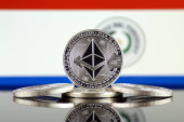 Wersja Ethereum (Eth) i Polska flaga. Obraz koncepcyjny dla inwestorów w kryptowaluta, technologia Blockchain, Smart umów, osobiste tokenów i początkowe monety oferuje.