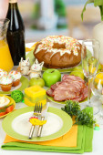 służąc stół wielkanocny z bliska smaczne dania