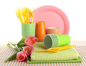 wielobarwny plastikowe naczynia na białym tle