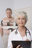 starszy kobiece kobieta lekarz trzymając raport x-ray