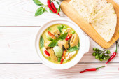 Zdjęcie "Roti i zielone Curry z kurczaka - muzułmańskiej" może być wykorzystywane do celów osobistych i komercyjnych zgodnie z warunkami zakupionej licencji Royalty-free. Obraz jest dostępny do pobrania w jakości wysokiej rozdzielczości do 5760x3840.