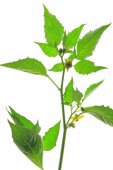 Uczep amerykański ziół leczniczych roślin. Znany również jako Beggarticks diabła, Devil's-Pitchfork, Bootjack, Sticktights, Nagietek Bur, kamerton chwastów, Tickseed Sunflower. Na białym tle.
