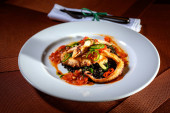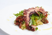 Zdjęcie "Pomidor i kalmary Sałatka serwowane orzechów cedrowych" może być wykorzystywane do celów osobistych i komercyjnych zgodnie z warunkami zakupionej licencji Royalty-free. Obraz jest dostępny do pobrania w jakości wysokiej rozdzielczości do 5760x3840.