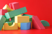 zróżnicowane kompozycje z kolorowych architektury drewnianej pionki