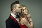 Fotografia mody styl para seksowny, dotykając się wzajemnie