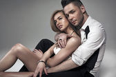 Fotografia mody styl para seksowny, dotykając się wzajemnie