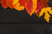 Jesienny baner z żółte liście na drewniane teksturowanej tło. Tło upadek na Święto Dziękczynienia