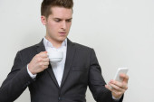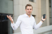 Przystojny biznesmen przeciwko widok miasta w Bangkok, Thaila