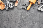 Zdjęcie "Górnej części drewniane łyżki i ścierki na czarnym tle drewnianych z miejsca kopii. Widok z góry przyborów kuchennych na ciemnym tle drewnianych. Leżał z płaskim." może być wykorzystywane do celów osobistych i komercyjnych zgodnie z warunkami zakupionej licencji Royalty-free. Obraz jest dostępny do pobrania w jakości wysokiej rozdzielczości do 5760x3840.