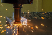 Zdjęcie "Cnc Frezarka cięcie części formy obróbki zgrubnej proces z płonącego statku. Zużycie narzędzia między cięcia ." może być wykorzystywane do celów osobistych i komercyjnych zgodnie z warunkami zakupionej licencji Royalty-free. Obraz jest dostępny do pobrania w jakości wysokiej rozdzielczości do 5760x3840.