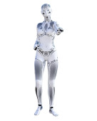 Zdjęcie "Kobieta robot. Metalowe droid. Sztuczna inteligencja. Sztuka konceptualna mody. Realistyczne 3d renderowania ilustracja. Studio, izolowania, wysoki klucz." może być wykorzystywane do celów osobistych i komercyjnych zgodnie z warunkami zakupionej licencji Royalty-free. Obraz jest dostępny do pobrania w jakości wysokiej rozdzielczości do 5760x3840.