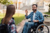 Zdjęcie "Inwalidów, patrząc na siebie nawzajem. Hali lotniska. Kobieta na wózku inwalidzkim. Pokój z widokiem na okolicę. Ograniczone możliwości. Romantyczne spotkanie osób niepełnosprawnych. Kochający niepełnosprawnych. Ludzie z ograniczonych możliwości." może być wykorzystywane do celów osobistych i komercyjnych zgodnie z warunkami zakupionej licencji Royalty-free. Obraz jest dostępny do pobrania w jakości wysokiej rozdzielczości do 5760x3840.