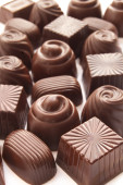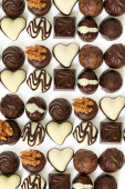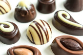 Asortyment cukierki czekoladowe z czarno -białe czekolady z orzechami i marcepan, mleko