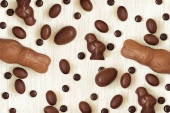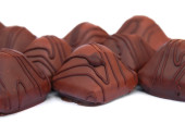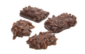 Asortyment cukierki czekoladowe z czarno -białe czekolady z orzechami i marcepan, mleko