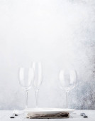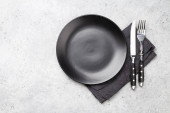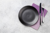 Zdjęcie "Nakrycie stołu. Pusta płyta, nóż, widelec, kieliszek do wina i serwetka. Widok z góry i położyć płasko z kopia miejsce" może być wykorzystywane do celów osobistych i komercyjnych zgodnie z warunkami zakupionej licencji Royalty-free. Obraz jest dostępny do pobrania w jakości wysokiej rozdzielczości do 5760x3840.