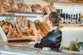 Sprzedawczyni w deli w kasie mięso cięcia niektóre kiełbasy