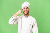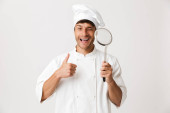 Obraz człowieka przystojny młody kucharz na białym tle białej ściany wyświetlone kciuki Gos.