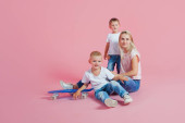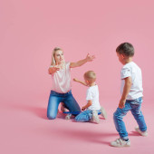 Zdjęcie "Piękna Blondynka Mama z dwóch synów szczęśliwy. Młoda kobieta i dwóch chłopców" może być wykorzystywane do celów osobistych i komercyjnych zgodnie z warunkami zakupionej licencji Royalty-free. Obraz jest dostępny do pobrania w jakości wysokiej rozdzielczości do 5760x3840.