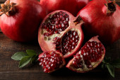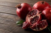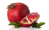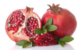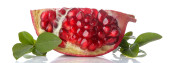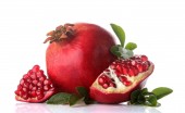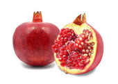 Duży czerwony granat i pół granatu na na białym tle