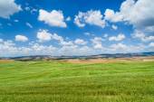 Krajobraz wzgórz Tuscany, Włochy. Obszarów wiejskich włoski panorama.
