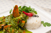 Zdjęcie "kurczak z curry zielone warzywa i ryż" może być wykorzystywane do celów osobistych i komercyjnych zgodnie z warunkami zakupionej licencji Royalty-free. Obraz jest dostępny do pobrania w jakości wysokiej rozdzielczości do 5760x3840.