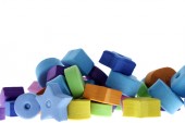 elementy wykonane z gumy eva, różne kształty i jasne kolory ułożone