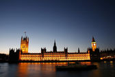 Big Bena i Izby Parlamentu tuż po zachodzie słońca nad Tamizą
