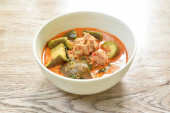 Zdjęcie "mięso pikantny gotowane pieczona kaczka z ananasem i bakłażan w mleko kokosowe curry na miski" może być wykorzystywane do celów osobistych i komercyjnych zgodnie z warunkami zakupionej licencji Royalty-free. Obraz jest dostępny do pobrania w jakości wysokiej rozdzielczości do 5760x3840.