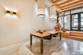 Zdjęcie "Pusty biały pokój z drewnianymi belkami stropowymi. Nikt nie wewnątrz" może być wykorzystywane do celów osobistych i komercyjnych zgodnie z warunkami zakupionej licencji Royalty-free. Obraz jest dostępny do pobrania w jakości wysokiej rozdzielczości do 5760x3840.