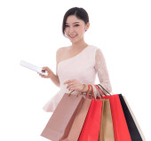 Zdjęcie "Młoda kobieta, zakupy i za pomocą cyfrowego tabletu na białym tle na białym tle" może być wykorzystywane do celów osobistych i komercyjnych zgodnie z warunkami zakupionej licencji Royalty-free. Obraz jest dostępny do pobrania w jakości wysokiej rozdzielczości do 5760x3840.