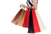 Kobieta trzyma torba na zakupy na białym tle na białym tle