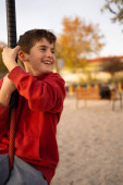 Chłopak gra na placu zabaw, Selektywny fokus i małej głębi ostrości