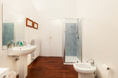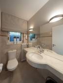 Elegancka łazienka z ciemnych płytek. Nikt nie wewnątrz
