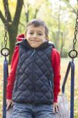 Chłopak gra na placu zabaw, Selektywny fokus i małej głębi ostrości
