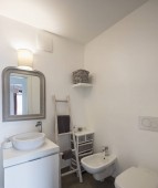 Elegancka łazienka z ciemnych płytek. Nikt nie wewnątrz