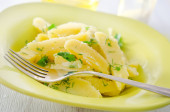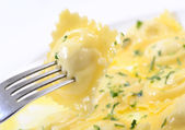 pierożki nadziewane szpinakiem i ricotta z serem i bazylią - włoskie jedzenie - zbliżenie