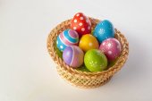 pisanki na białym tle na biały backgrund, koncepcja wakacje