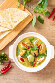 Zdjęcie "Roti i zielone Curry z kurczaka - muzułmańskiej" może być wykorzystywane do celów osobistych i komercyjnych zgodnie z warunkami zakupionej licencji Royalty-free. Obraz jest dostępny do pobrania w jakości wysokiej rozdzielczości do 5760x3840.