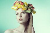 piękna młoda kobieta z delikatne kwiaty we włosach