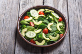 Dziecko zielony szpinak Sałatka z awokado, brokuły, ogórek, wapno i sezamu. Wegańskie zdrowy detox