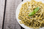 Zdjęcie "Makaron spaghetti z sosem pesto. Tło włoski żywności" może być wykorzystywane do celów osobistych i komercyjnych zgodnie z warunkami zakupionej licencji Royalty-free. Obraz jest dostępny do pobrania w jakości wysokiej rozdzielczości do 5760x3840.