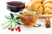 smak rogaliki w kosz i dżem na białym tle na Zielone Świątki