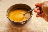 Zdjęcie "Kobieta w kolorowe bluzki zjada dyni owsianka. Przydatne dietetycznych środków spożywczych" może być wykorzystywane do celów osobistych i komercyjnych zgodnie z warunkami zakupionej licencji Royalty-free. Obraz jest dostępny do pobrania w jakości wysokiej rozdzielczości do 5760x3840.