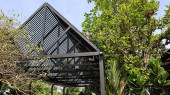 w gorący letni dzień w domku ogród różnych schronisk i małe kufry do przechowywania i narzędzia ogrodnicze znajdują się w obszarze w pobliżu stuttgart w południowych Niemczech