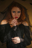 Styl Vintage portret kobiety Młoda piękna czarownica