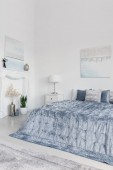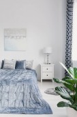 Zdjęcie "Luksusowych wnętrz sypialni z srebrny kołdra oraz poduszki na rodzaj łóżko, prawdziwe zdjęcie z miejsca kopii" może być wykorzystywane do celów osobistych i komercyjnych zgodnie z warunkami zakupionej licencji Royalty-free. Obraz jest dostępny do pobrania w jakości wysokiej rozdzielczości do 5760x3840.