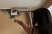 dziewczyna znalazła pleśń w rogu łazienki, w budynku mieszkalnym po remoncie