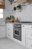 Lekka, nowoczesna kuchnia wnętrz z nowego pieca