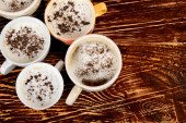 Wiele filiżanek z smaczne aromatyczne kawy na białym tle